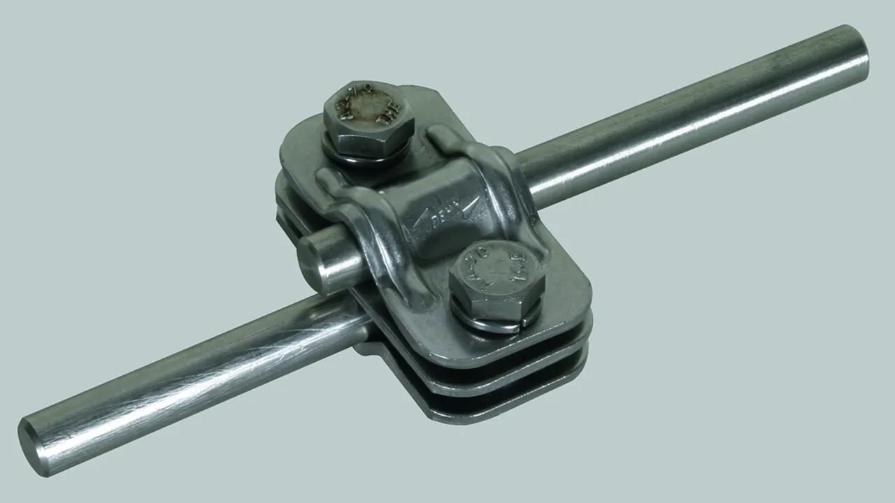 MV clamp for universal use as cross, T and parallel clamp, without intermediate plate for Rd, lightning current carrying capability up to 200 kA (10/350)