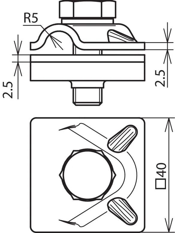 Clamps with spring washer for connecting round / flat conductors in Ex zone 2/22. The clamps are secured against self-loosening according to DIN EN 62305-3 Supplement 2.