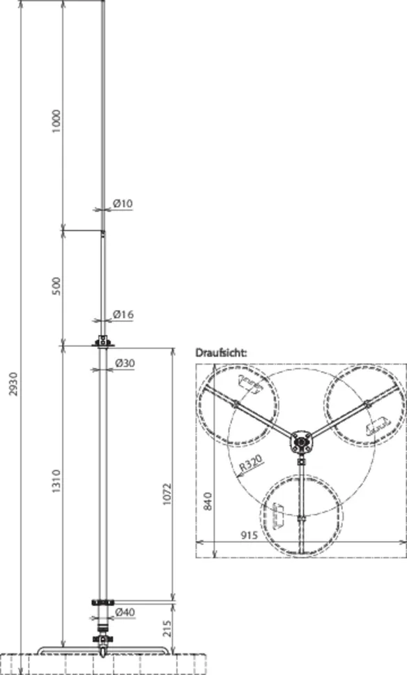 Concrete bases (weight 17 kg) and support plates have to be ordered separately.