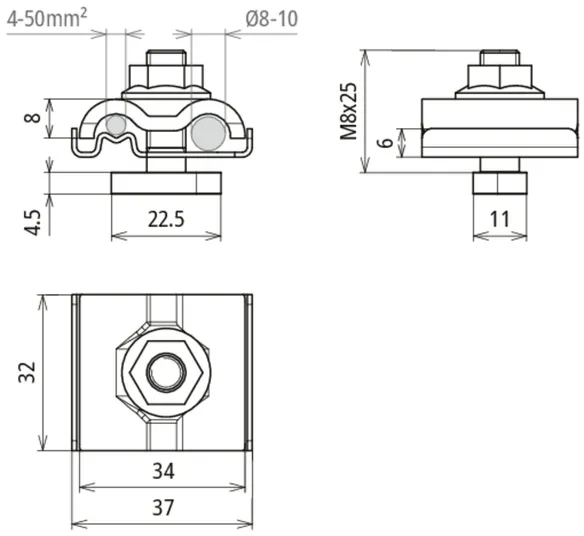| Screw | Hammer-head bolt M8 x 25 mm |