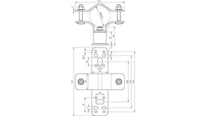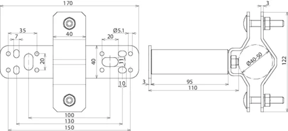 For attaching supporting tubes or air-termination rods D40 / D50, with double clamp for connecting 2x Rd 8-10 mm.