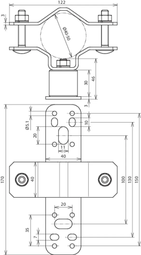 Clamping range for air-termination rod: 40-50 mm