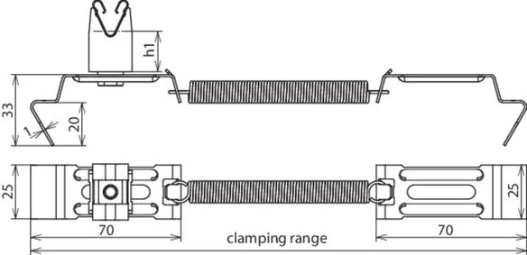 SPANNsnap fixed with a stainless steel tension spring, with DEHNsnap conductor holder, loose conductor routing, laterally adjustable