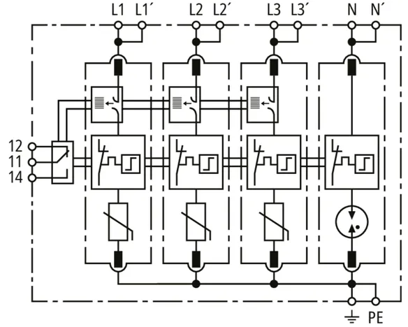 | Max. discharge current (8/20 µs) [N-PE] (Imax ) | 120 kA |