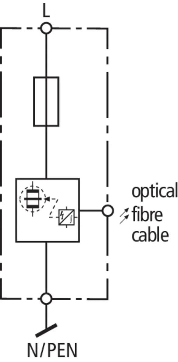 • Spark-gap-based lightning current arrester with an integrated backup fuse capable of carrying lightning currents in a compact enclosure