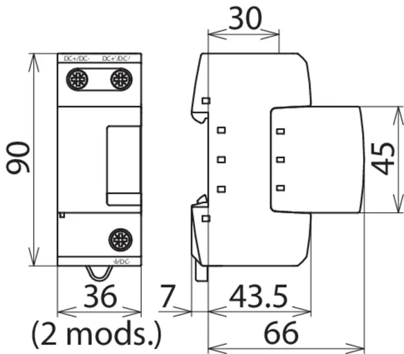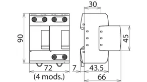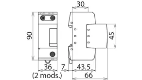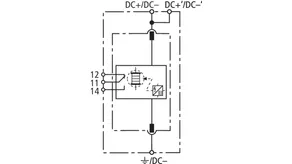 Coordinated and modular two-pole lightning current arrester for d.c. applications up to 60 V (1+1 configuration); FM version with floating remote signalling contact.