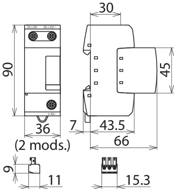 Voltage protection level (DC+/DC- -> DC-/DC+) / (DC-/DC+ -> 9) (UP ) ≤ 1.5 / ≤ 1.5 kV