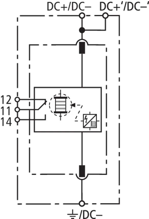 Coordinated and modular single-pole lightning current arrester for d.c. applications; with remote signalling contact for monitoring device (floating changeover contact).