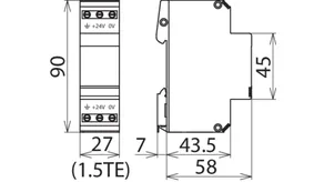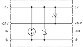 Energy coordinated combined arrester for protecting the rectifier in the protective circuit (red colour). Pluggable remote signalling contact (break contact) for overload indication (temperature monitoring of the varistors). Installation in sheet metal housing recommended. Low impulse sparkover voltage due to capacitive control.