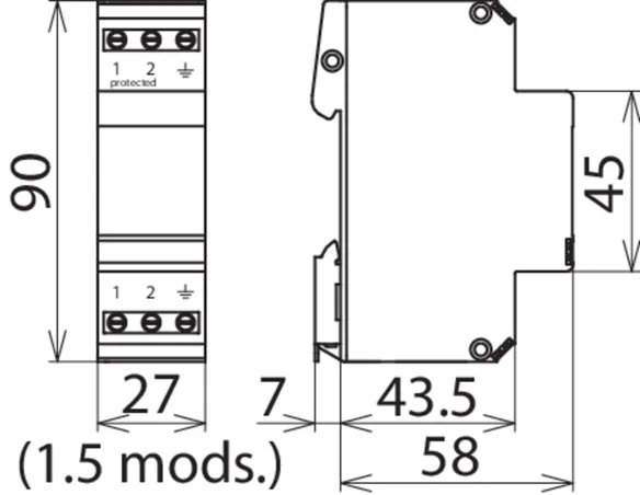 | D1 Lightning impulse current (10/350 µs) per line (Iimp ) | 1 kA |