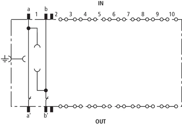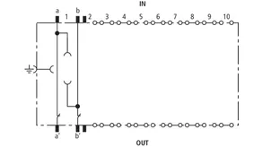 Plugged into the EF 10 DRL earthing frame, the earthing module connects a pair placed on an LSA disconnection block to the equipotential bonding. Its function is to directly earth unused cable cores that are placed on the LSA disconnection block. The earthing module must not be used in combination with the DRL 10 B... plug-in SPD block.