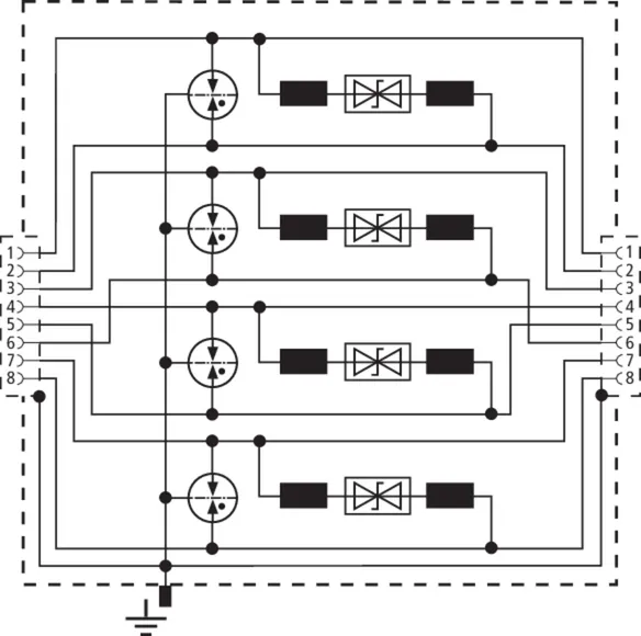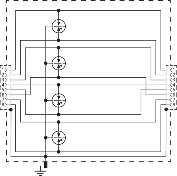 Universal arrester for Industrial Ethernet, Power over Ethernet (IEEE 802.3 compliant up to PoE++ / 4PPoE) and similar applications in structured cabling systems according to class E up to 250 MHz. Protection of all pairs by means of powerful gas discharge tubes and one adapted filter matrix per pair. Fully shielded type with sockets for DIN rail mounting (up to 1 Gbit Ethernet).
