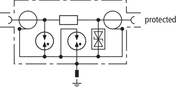 Arrester suitable for remote supply with exchangeable gas discharge tube. Long endurance due to minimum contact erosion resulting from the large-area contact surface of the gas discharge tube.