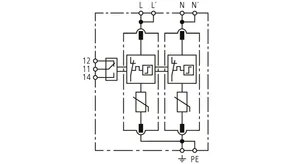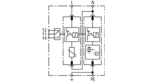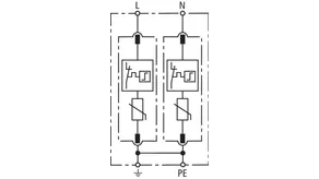 Modular surge arrester with a high total discharge capacity in the N-PE path for TT and TN systems (1+1 configuration); meets increased safety requirements by higher discharge capability; with floating remote signalling contact.