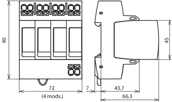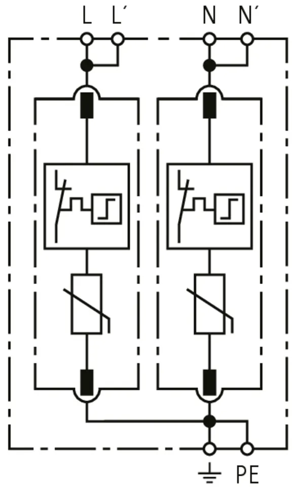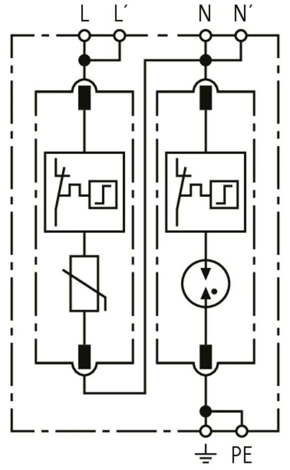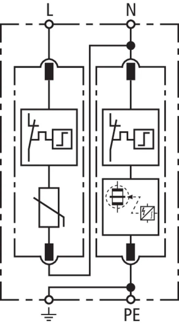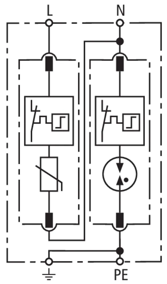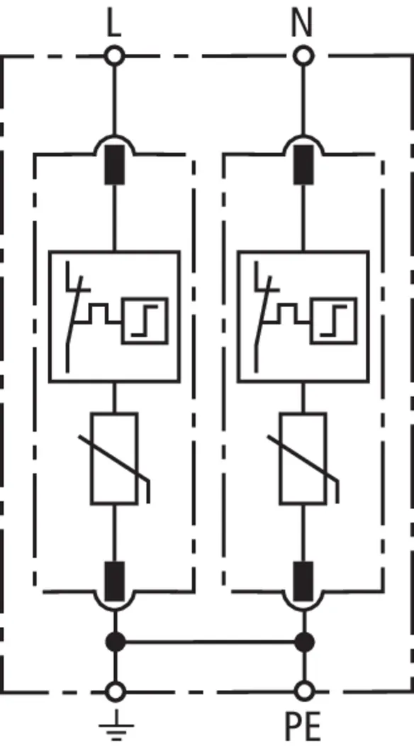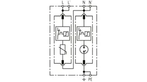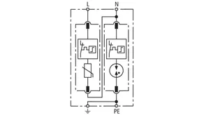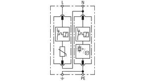 Modular surge arrester for use in single-phase TT and TN systems (1+1 configuration).