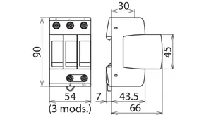 Modular surge arrester (3+0 configuration) with a rated varistor voltage Umov = 750 V a.c.; FM version with floating remote signalling contact.