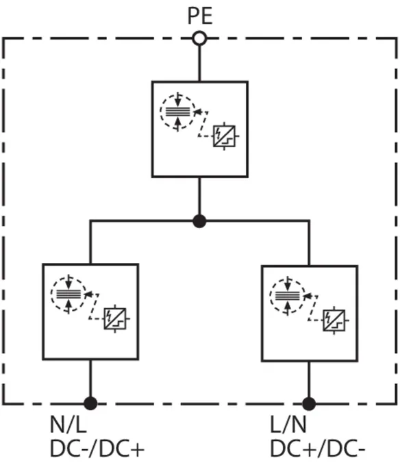 | Nominal discharge current (8/20 µs) at ≤70 °C [L-N/N-PE / L-PE] (In ) | 5.5 kA +-5 times, interval 1min. (each time), interval 25 min. (each group) |