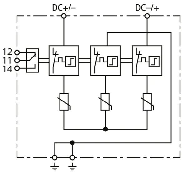 | Total discharge current (10/350 µs) [DC+/DC- -> PE] (Itotal ) | 12.5 kA |