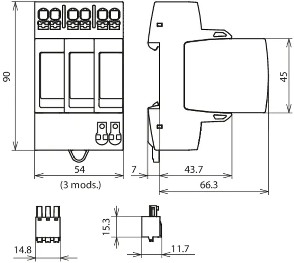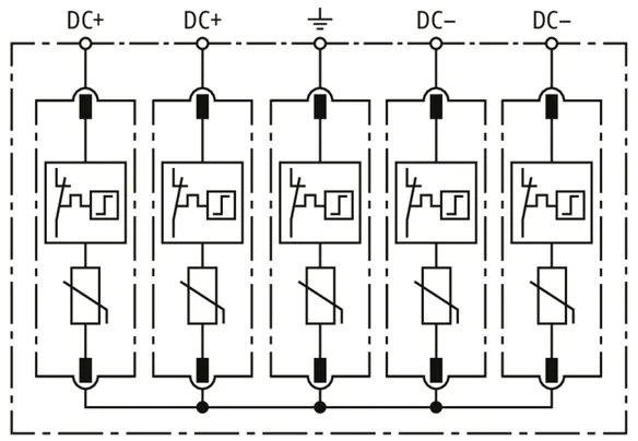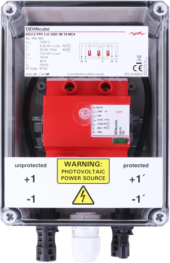 • Prewired multipole surge arrester with IP 65 degree of protection for use in photovoltaic systems