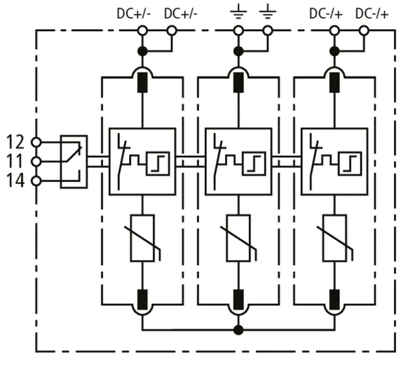 Nominal discharge current (8/20 µs) [(DC+/DC-) --> PE] (In ) 12.5 kA