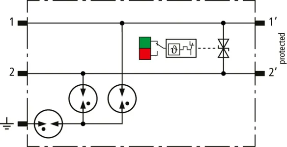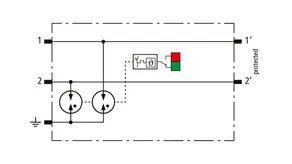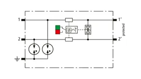 Space-saving, modular lightning current arrester with a width of 6 mm and push-in connection technology with status indication for protecting two single lines for lightning equipotential bonding as well as indirect earthing of shielded cables. With signal disconnection for maintenance purposes.