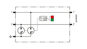 Space-saving, modular surge arrester with a width of 6 mm and push-in connection technology with status indication for protecting 2 lines of stranded unearthed signal interfaces with a nominal voltage of 230 V. With signal disconnection for maintenance purposes.