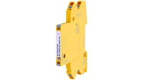 Space-saving, modular combined arrester with a width of 6 mm and push-in connection technology with status indication for protecting one pair in 24 V DC systems. Also suitable for use with earthed negative pole; integrated PTC resistors allow for secure resetting of the arrester after interference in the system circuit with short-circuit currents of up to 40 A. With signal disconnection for maintenance purposes.