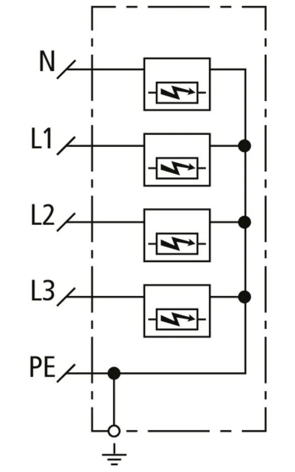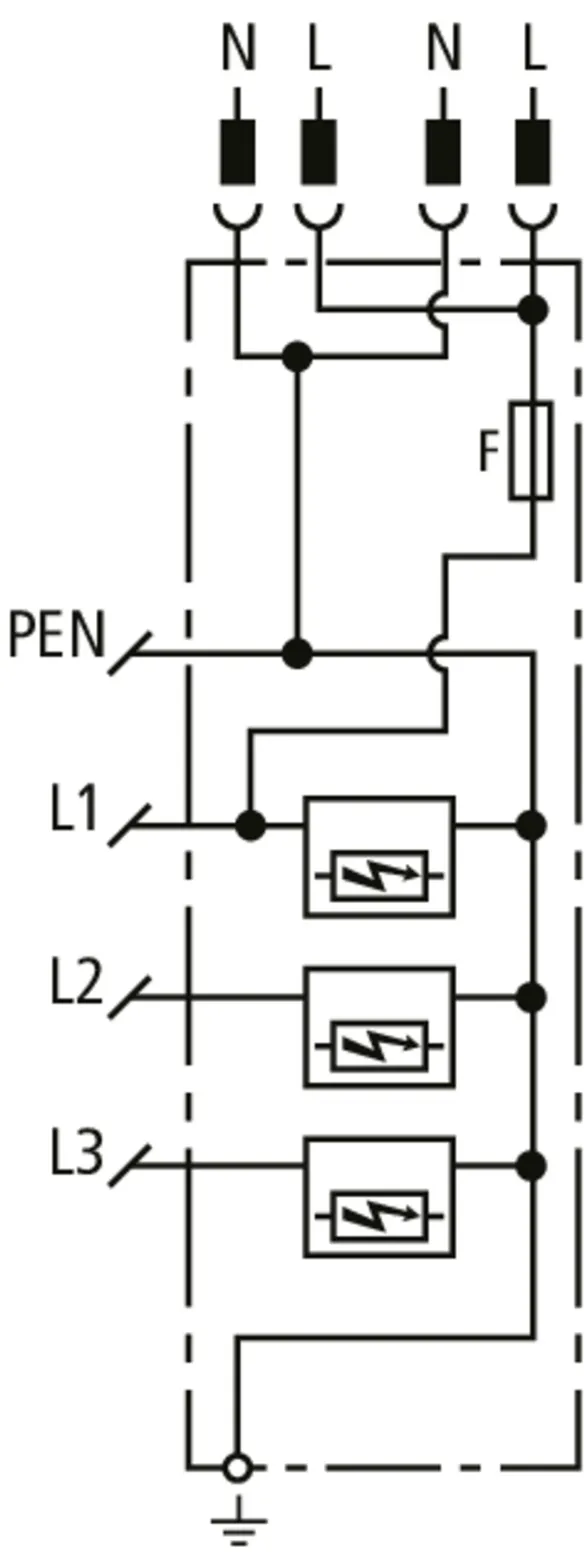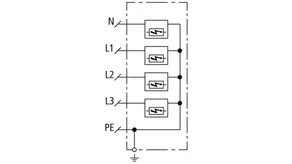 Lightning impulse current (10/350 µs) [L1+L2+L3-PEN] (Itotal ) 22.5 kA