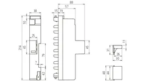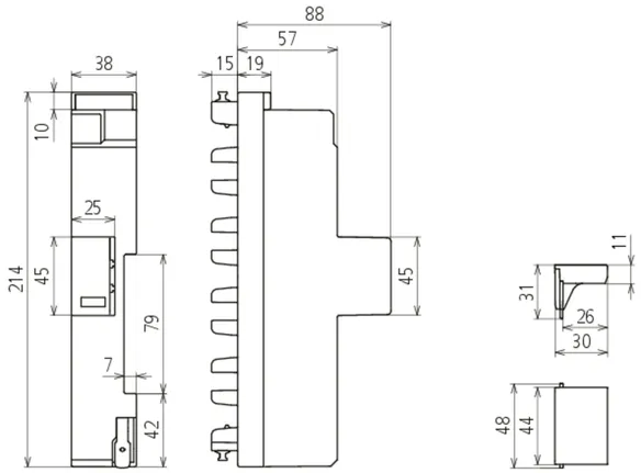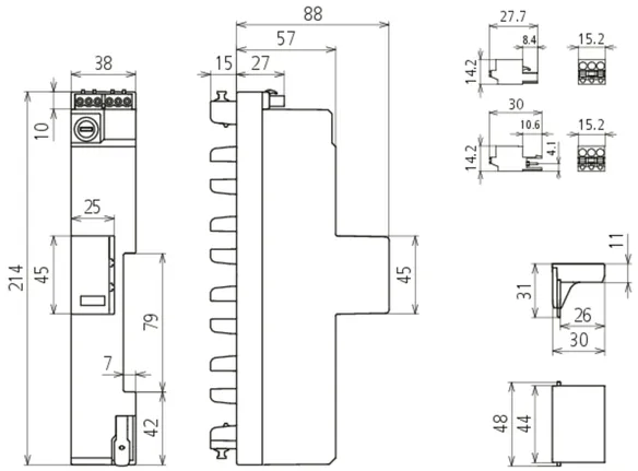 • Space-saving design thanks to partially small width of only 38 mm for compact use with supply adapter or integrated circuit breaker