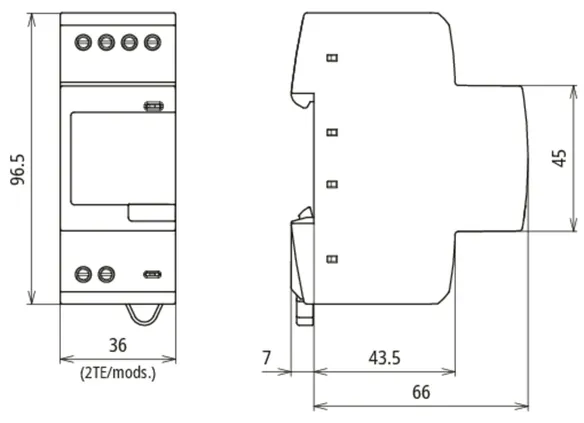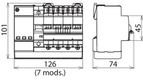 DIN rail mounted device according to DIN 43880, 7 modules
