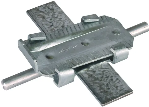 Wedge connector for T, cross and parallel connections Wedge connector For T, cross and parallel connections for use in concrete foundations With lock-in position in the wedge