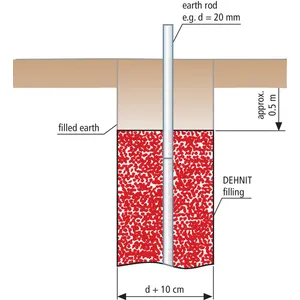 Highly swellable, powdery and extremely moisture retaining special clay provides a conductive earth electrode enclosure and reduces the soil resistivity.