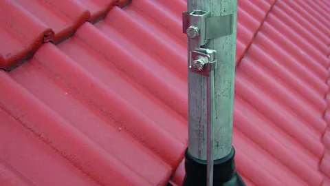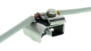 Gutter clamp for the lightning-current-carrying connection of the antenna earthing (e.g. 16 mm2) at the cross point with the gutter.