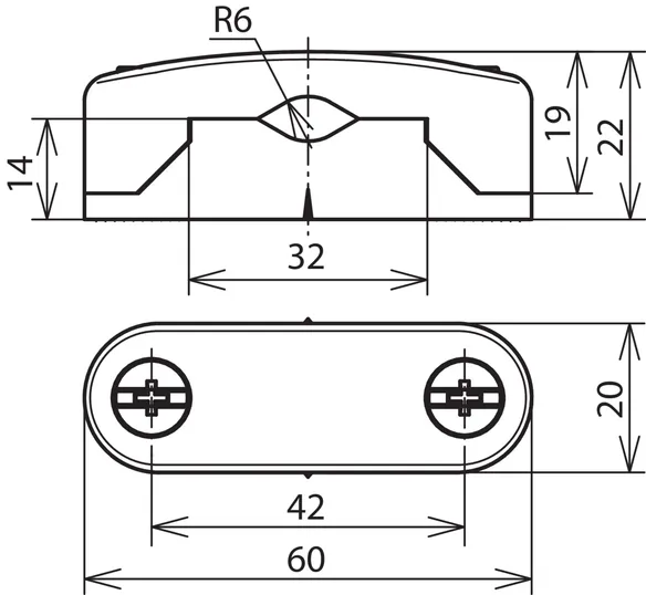 Fixing : Ø10 and 6 x 19 mm