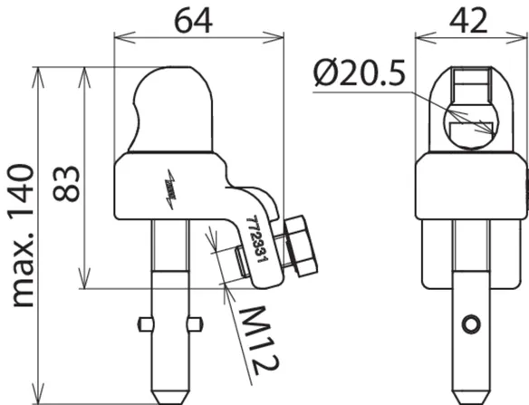 *) See table for „Clamping range and maximum cable cross-section of universal clamps used for“
