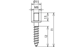 Hanger bolt for fixing conductor, flat strip and rod holders with female thread.