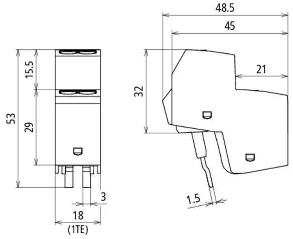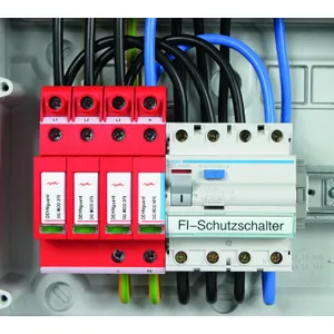 STAK 2X16 for EMC-optimised through-wiring of lightning current and surge arresters according to IEC 60364-5-53.