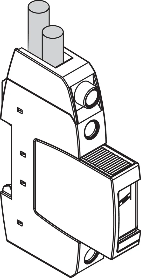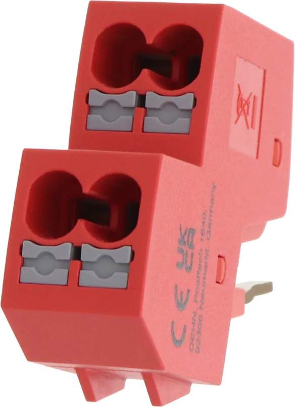 Pin-shaped terminal for EMC-optimised through-wiring of lightning current and surge arresters according to IEC 60364-5-53.
