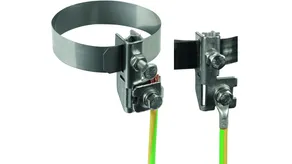 Pipe clamp for electrically contacting pipes in Ex zone 2/22. The pipe clamp is secured against self-loosening according to DIN/EN 62305-3 Supplement 2.