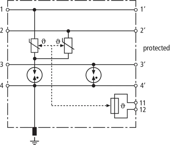 | D1 Lightning impulse current (10/350 µs) per line (Iimp ) | 2.5 kA |