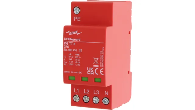 Two-pole DEHNflex surge arrester (type 3 according to EN 61643-11) with monitoring device and disconnector. Enhanced safety du to Y protective circuit.