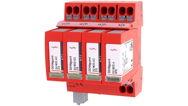 Modulärt överspänningsskydd typ 2 + 3 med push-in dubbelplintar. För TT- och TN-S-system (3+1 krets). Med potentialfri fjärrsignaleringskontakt.