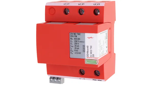 DEHNventil M2-serien imponerar med sin högsta effekttäthet: En hög impulsström- och kortslutningsströmstyrka på 100 kAeff, kombinerat med ett modulärt uppbyggnadskoncept – med en storlek på endast 4 modulsbredder.
