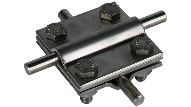 Cross unit according to EN 62561-1, for aboveground and underground connection of round and flat conductors. Type with intermediate plate, with M8 screws.