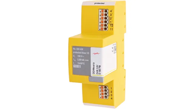 Spänningsförsörjning 230 / 400 V: Flerpoligt överspänningsskydd DEHNguard M, typ 2 enligt SS EN 61643-11, bestående av en basdel och inpluggade skyddsmoduler.